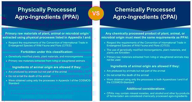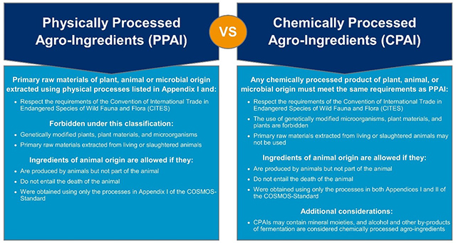 Figure 1. Requirements detailed within the COSMOS-Standard for physically processed agro-ingredients (PPAI) and chemically processed agro-ingredients (CPAI)