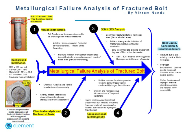 Hydrogen embrittlement (HE) in high-strength steel bolts of property classes 10.9 & 12.9 is known to happen primarily due to changes in material behavior by atomic hydrogen. As a result, this may lead to brittle fracture under tensile load caused by the tightening procedure or during in-service conditions.