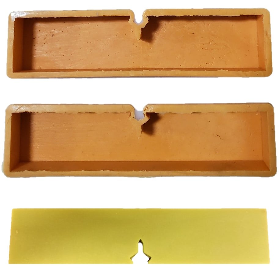 Figure 1: silicone mold (top and middle) and machined test specimen (bottom)