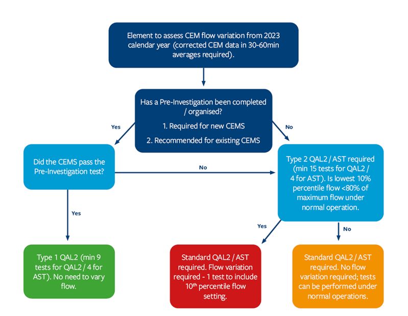 The flow chart below demonstrates the decision process regarding EN 14181 flow assessments.