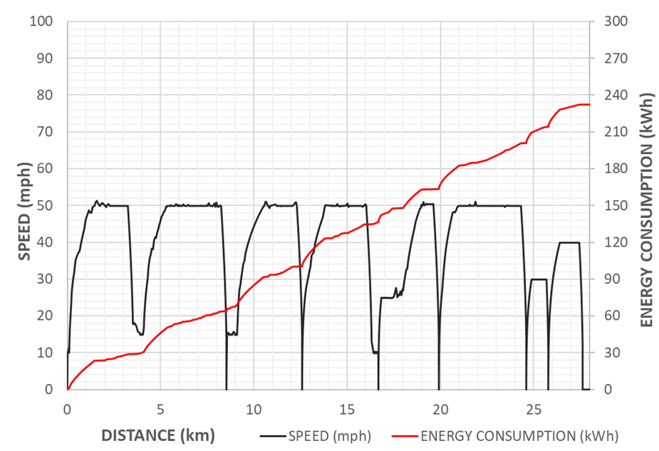 The first challenge was to assess the energy requirement for the route. A model was needed that considered the gradients on the line, friction caused by bends and points, acceleration away from stations and the possibility of unplanned stops at signals.