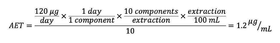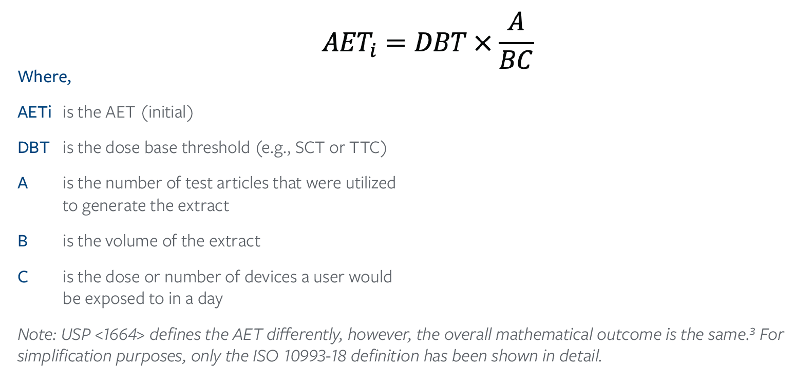 Note: The PQRI utilizes slightly different definitions for UF and AETf, however, the overall mathematical outcome is the same. 4,5 For simplification purposes, only the ISO 10993-18 definition has been shown in detail.